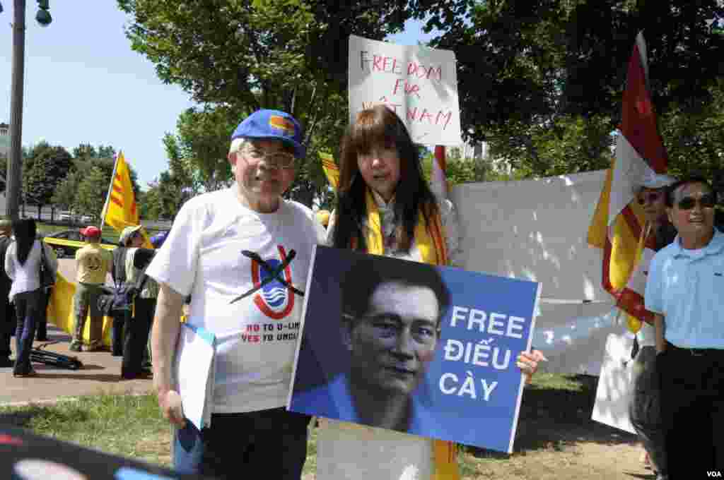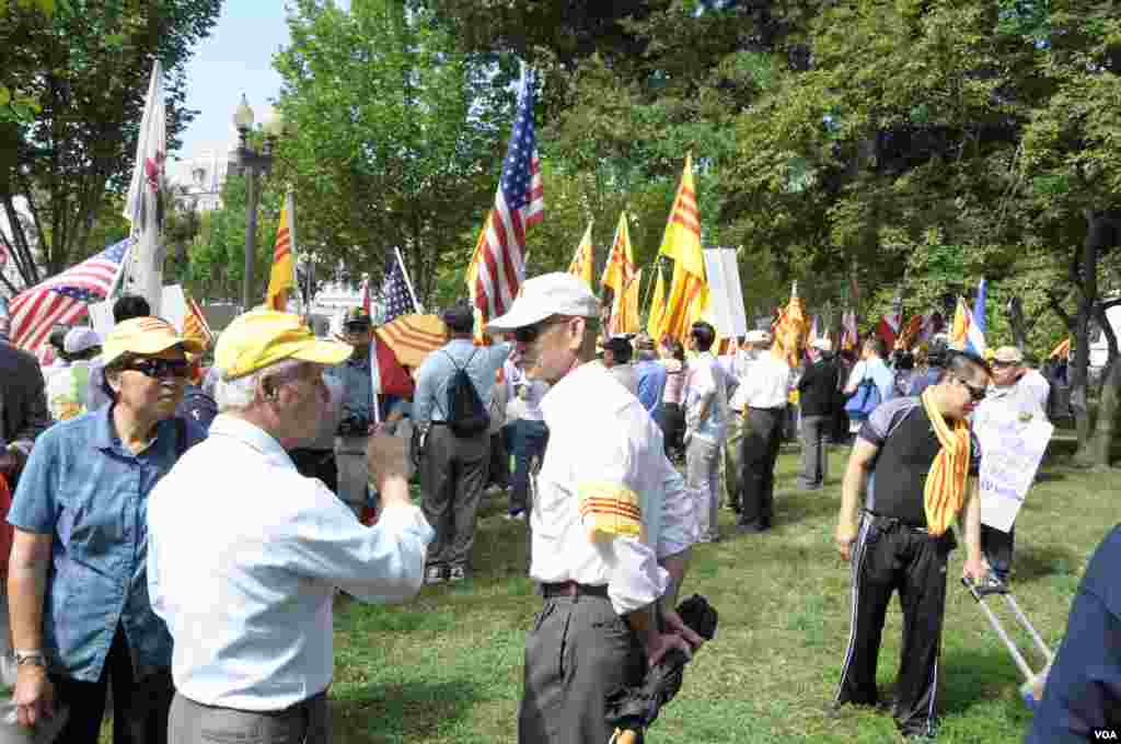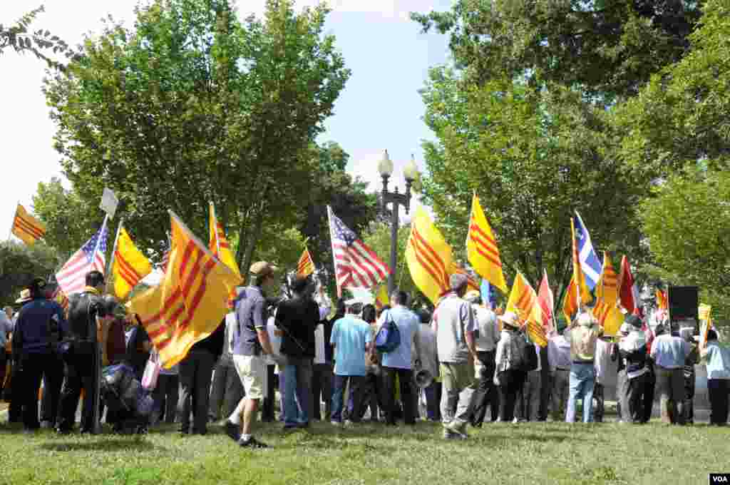 Hàng ngàn người Việt từ khắp nơi đã đổ về công viên Lafayette trước Tòa Bạch Ốc để phản đối những vi phạm nhân quyền của Hà Nội, yêu cầu Tổng Obama đặt nặng vấn đề nhân quyền trong cuộc gặp thúc đẩy quan hệ đối tác Việt-Mỹ.