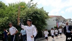 Sáng sớm thứ Bảy, người rước đuốc đầu tiên đã khởi hành tại một nơi thuộc miền đông nước Anh, trước sự chứng kiến của một đám đông người reo hò.