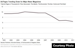 Bảng dưới đây cho thấy sự sút giảm cụ thể hơn của từng tờ báo lớn từ năm 2010 đến 2011, trong đó, Newsweek bị sút giảm trầm trọng nhất: