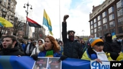 Hàng ngàn người tuần hành ở thủ đô Ukraine tỏ sự đoàn kết trước nguy cơ xâm lược