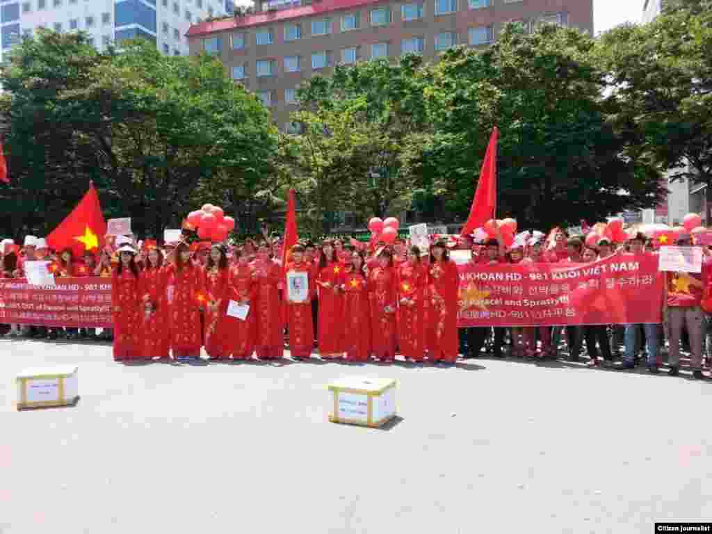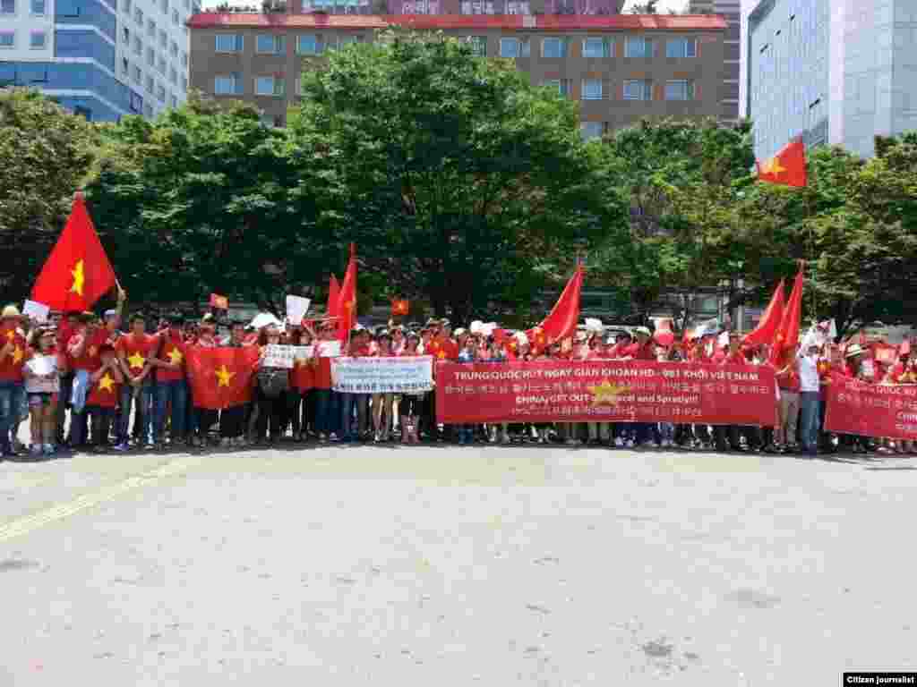 Người Việt ở Hàn Quốc xuống đường tuần hành phản đối Trung Quốc (ảnh do bạn đọc cung cấp)