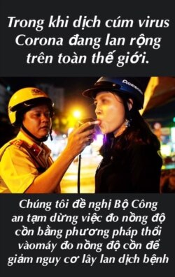 Một số người khác yêu cầu nhà chức trách Việt Nam tạm dừng biện pháp đo nồng độ cồn mới được áp dụng đối với người tham gia giao thông vì sợ lây nhiễm corona.