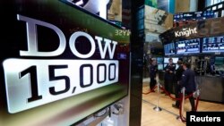 Chỉ số trung bình công nghiệp Dow Jones có lúc vượt 15,000 điểm nhưng chốt lại với mức 14,973.