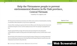 Gần 150.000 người đã ký vào thỉnh nguyện thư kêu gọi Mỹ giúp Việt Nam trong thảm họa cá chết ở miền Trung.